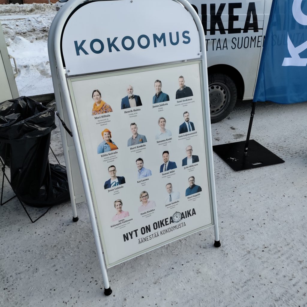 26.2.2023 Laihialla vieraili: eduskuntavaaliehdokkaat Mari Hiltula, Sami Keskinen, Riitta Koivula, Harri Koskela, Susanna Koski, Sam Leijonanmieli, Jesse Luhtala, Kai Luoma, Jyrki Mäkynen, Paula Risikko, Janne Sankelo ja Harri Seppälä.