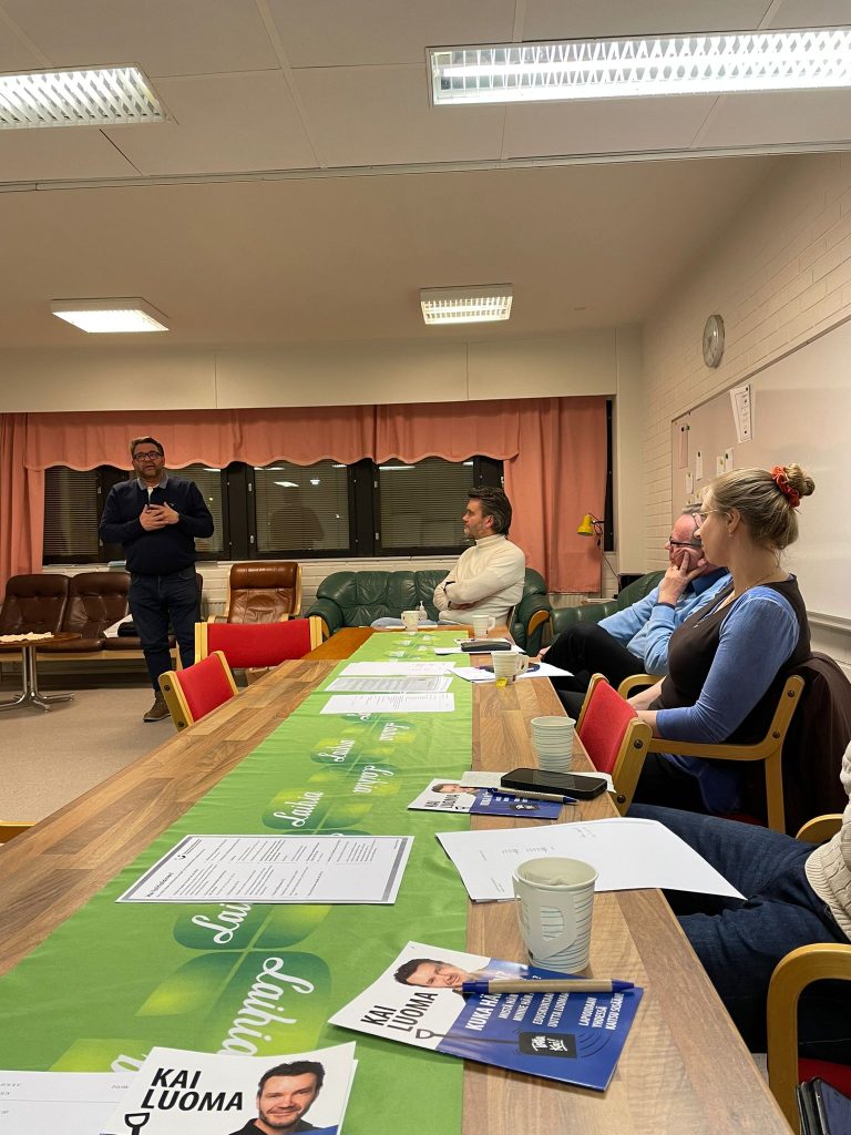 26.2.2023 Laihialla vieraili: eduskuntavaaliehdokkaat Mari Hiltula, Sami Keskinen, Riitta Koivula, Harri Koskela, Susanna Koski, Sam Leijonanmieli, Jesse Luhtala, Kai Luoma, Jyrki Mäkynen, Paula Risikko, Janne Sankelo ja Harri Seppälä.