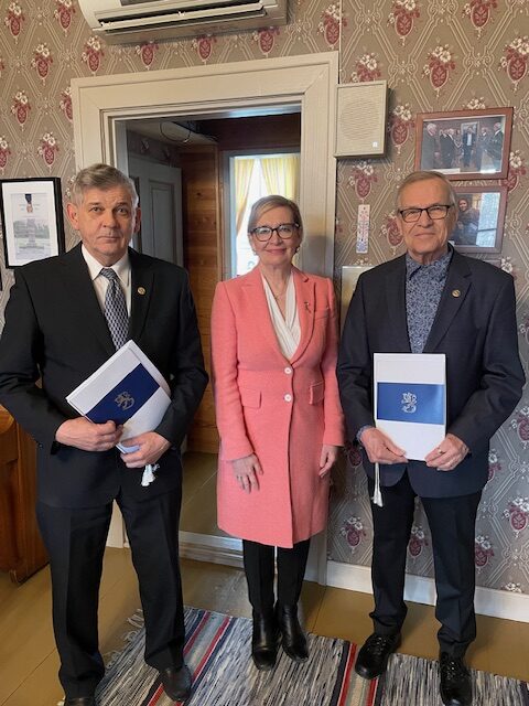 Sitten vielä yhdistysasiaa. Kevätkokouksessa Eduskunnan toinen varapuhemies Paula Risikko oli myös kutsuttuna ja hänellä oli erityisen miellyttävä tehtävä olla luovuttamassa Sauli Tuomelalle ja Raimo Vessoselle arvonimi-kirjat, Tuomelalle pitkään kunnallipolitiikassa toimineena ja Vessoselle pitkästä työurasta mm. sillanrakentajana. Parhaimmat onnittelut Kunnallisneuvokselle ja Ylirakennusmestarille!