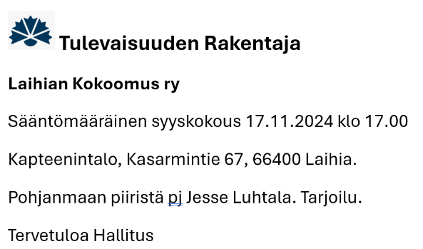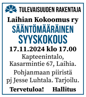 Toistan tässä itseäni: Laihialla on nyt aihetta panostaa tulevaisuuteemme ja ottaa määräaikaiseen projektiin yrityskonsultti! Se ei paljon vie, mutta voi antaa todella paljon.